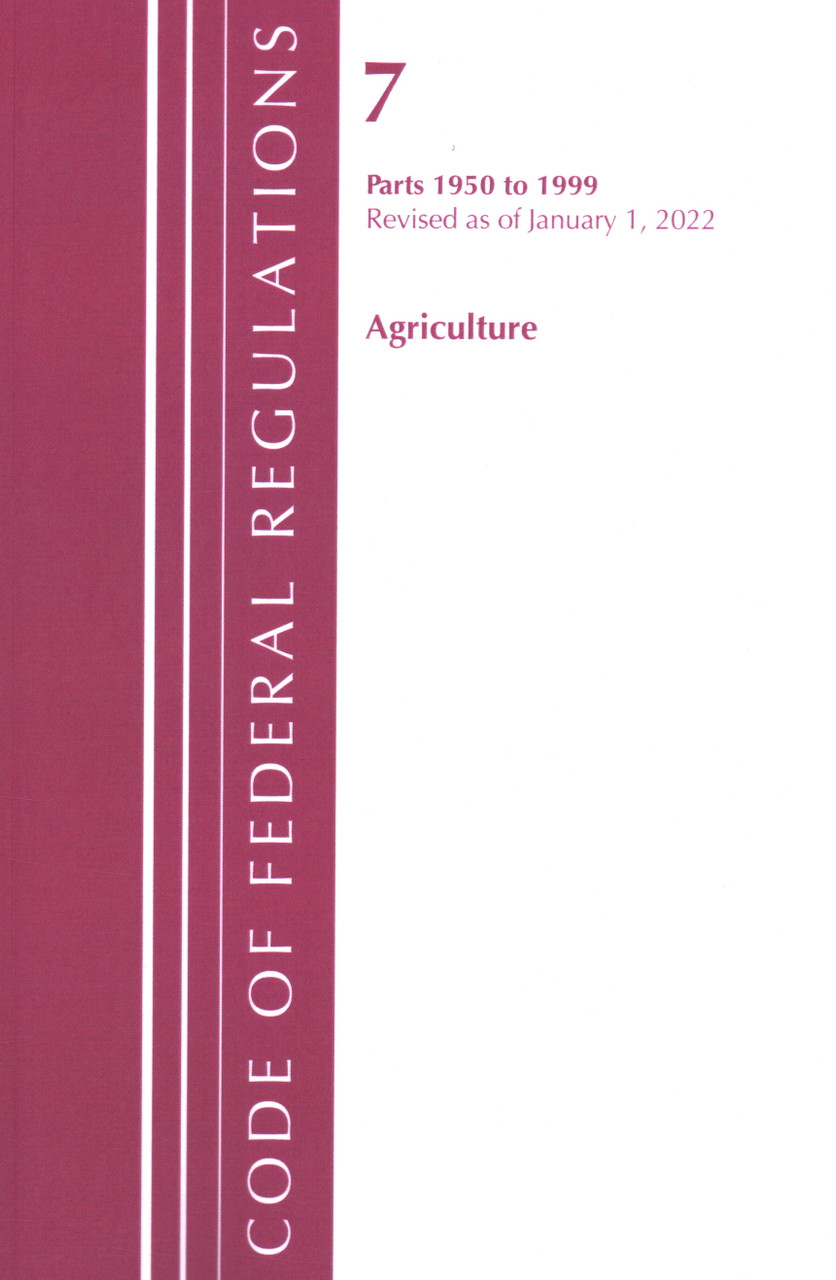 - Code of Federal Regulations, Title 07 Agriculture 1950-1999, Revised as of January 1, 2022 (Cover only)