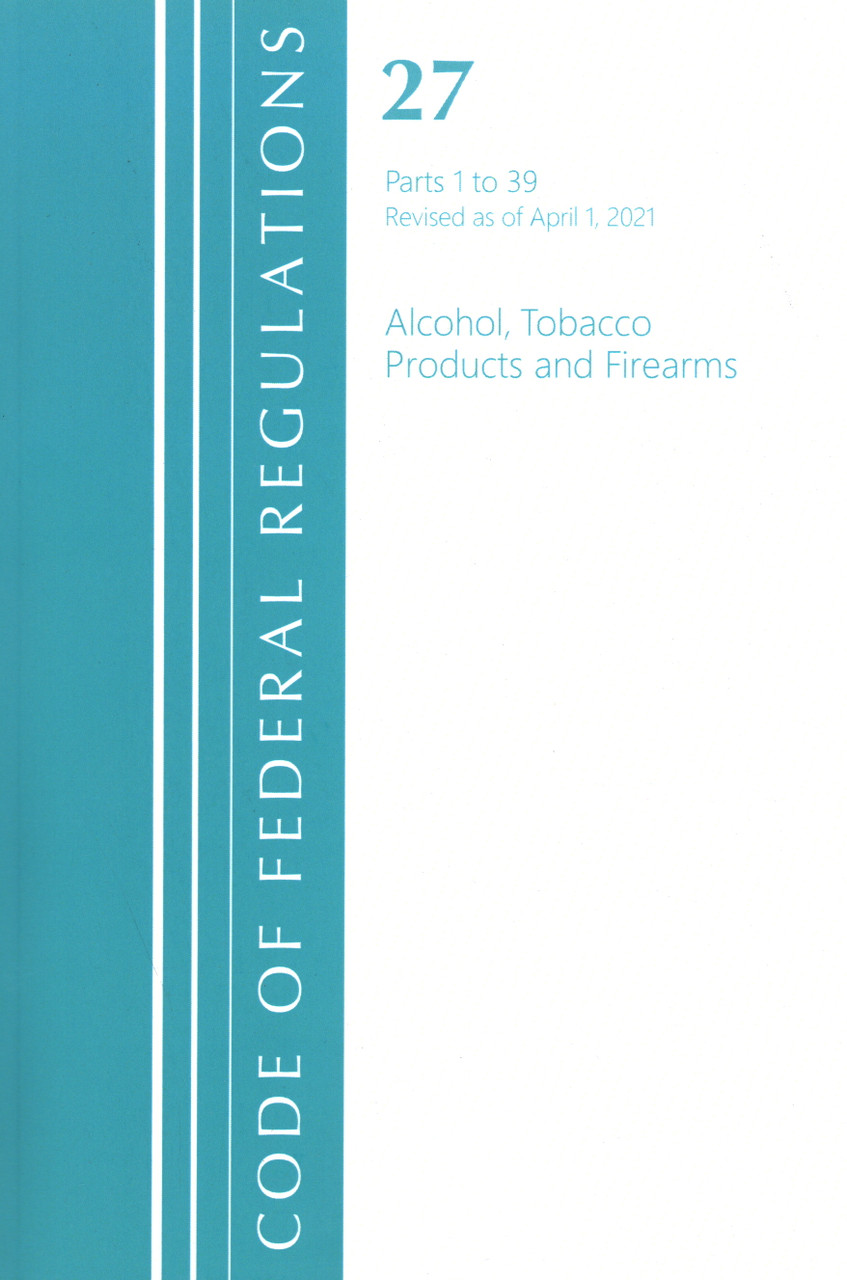 - Code of Federal Regulations, Title 27 Alcohol Tobacco Products and Firearms 1-39, Revised as of April 1, 2021