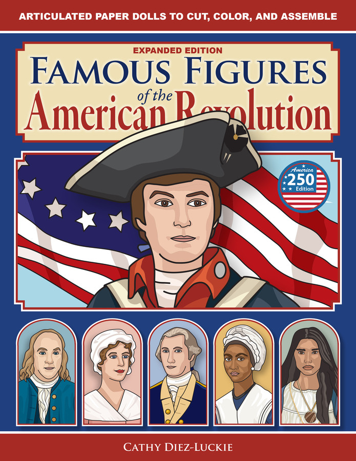 Newly updated and expanded for the 250th anniversary of the American Revolution, this set includes 15 historical figures – soldiers, scientists, leaders, writers, and more, from all sides of this thrilling struggle – in both pre-colored and color-them-in versions, to cut out and assemble into movable action figures.