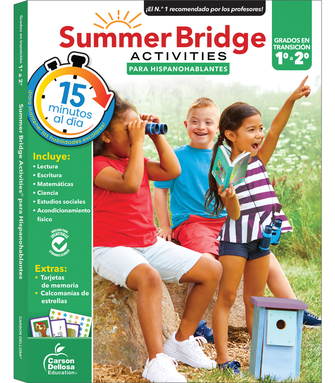 Evite la pérdida del aprendizaje durante el verano y prepare a su hijo que va a primer grado y habla español para que tenga éxito cuando vuelva a la escuela en solo 15 minutos al día, con actividades, ejercicios y juegos divertidos atractivos: ¡todo en un solo libro de ejercicios en español!