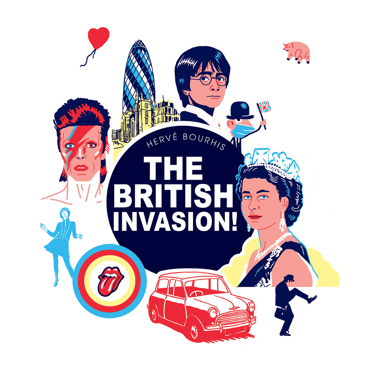 A “little square book” focused on English pop culture since 1962 when the country began its revolution! Because it was in 1962, 60 years ago, that the ‘ole Albion, that of the monarchy, tea and crumpets and bowler hats took a resolutely modern turn, thanks to a sexy secret agent, a band from Liverpool, and a mini (skirt and car). From the eccentric to the ultra-conservative, from James Bond to AstraZeneca, from Bowie to Banksy, including After Eight and the Teletubbies, year after year, all things Brit are covered!