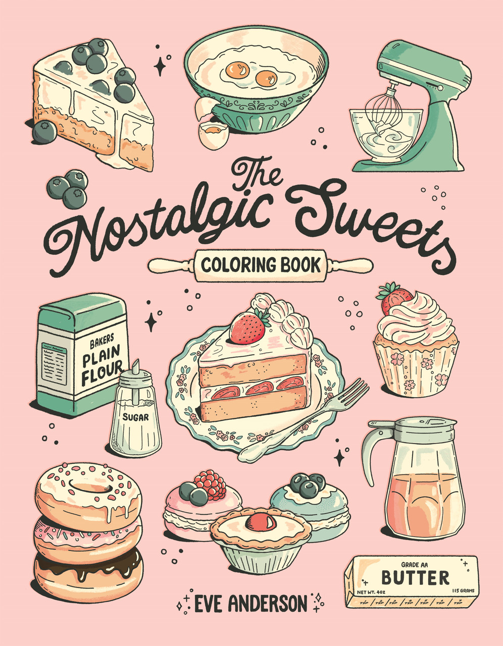 Sit back, relax, and bring your cozy bake shop dreams to life—no preheating or mixing required. With 44 pages of hand-drawn illustrations by Eve Anderson, you can color in delightful recipe compositions, standalone showstoppers, tempting culinary patterns, and sweet scenes straight from your favorite childhood memories. With a mix of treats from Americana favorites like root beer floats and peach pie to British classics like scones with clotted cream and Scottish strawberry tarts, there’s something to satiate your every craving.
